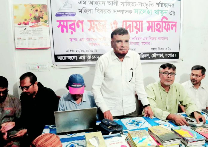 গত ২৬ অক্টোবর ২০২৩ তারিখ যশোরের চৌগাছা রিপোর্টার্স ক্লাবের সাধারণ সম্পাদক এম হাসান মাহমুদের সহধর্মিনী ও আহম্মদ আলী সাহিত্য-সংস্কৃতি পরিষদের মহিলা বিষয়ক সম্পাদক সালেহা খাতুনের স্মরণ সভা ও দোয়া মাহফিল অনুষ্ঠিত হয়েছে। বৃহস্পতিবার বিকালে আহম্মদনগর সাহিত্য-সংস্কৃতি পরিষদের কার্যালয়ে এই স্মরণ সভা ও দোয়া মাহফিল অনুষ্ঠিত হয়।
