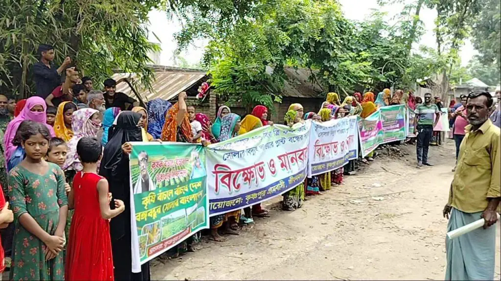 এ সময় গ্রামের কৃষক-কৃষাণিরা বিক্ষোভ প্রদর্শন করে এ প্রকল্প বাতিলের দাবি জানান।